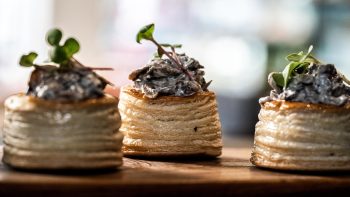 Crisp hollow case of puff pastry filled with wild mushrooms & blue cheese.